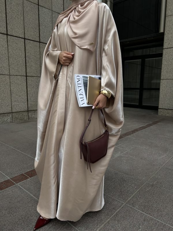 Kore Saten 3 Parça Plisse Abaya Takımı
